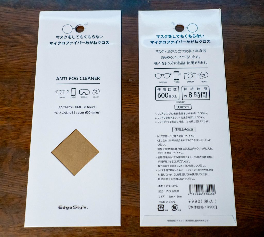 そんな中見つけた「くもり止めクロス ANTI-FOG CLEANER」を購入してみました。