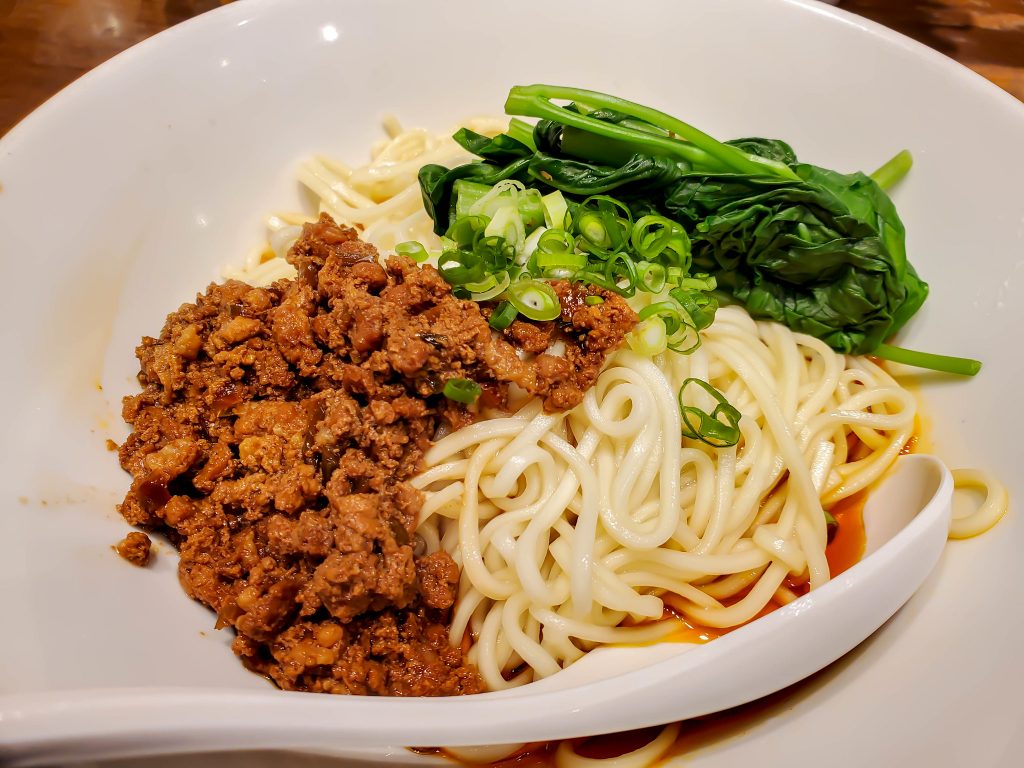 こちらのお店の売りはもちろん汁なし担々麺ですが、日本スタイルの「日式」と本場四川スタイルの「成都式」の汁なし担々麺があります。日式は胡麻ペーストベースの濃厚なラー油にもちもち太麺を合わせたもので、成都式は中国唐辛子、花椒を感じやすいシンプルなラー油と中太のストレート麺を合わせたものだそう。