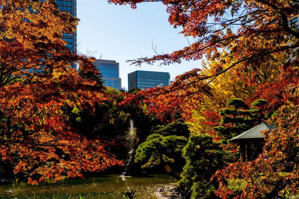 ビルが立ち並ぶ中でゆっくり紅葉を楽しめるのは良いですね。