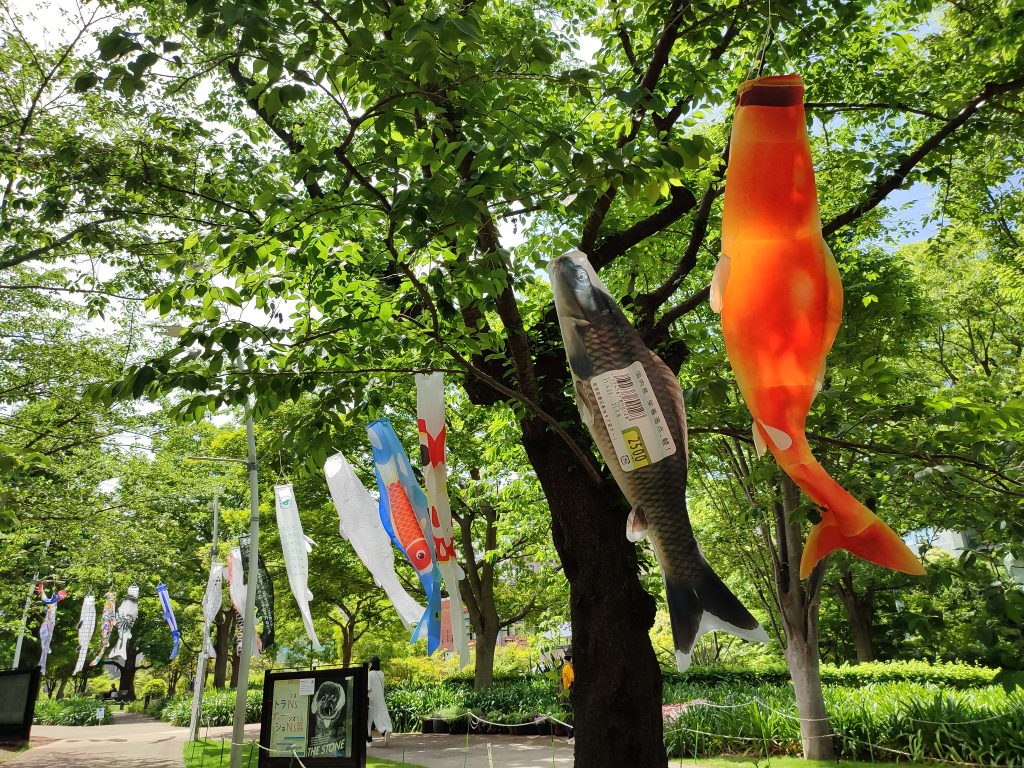 「ミッドパーク こいのぼりコレクション」として、「子どもの成長を願う」をテーマに国内外の様々なアーティストやデザイナー112名がデザインしたオリジナルこいのぼりが展示されています。5/9まで開催。
