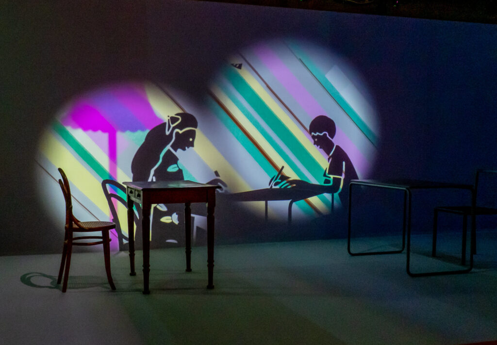人がライトで照らしたところに影が現れるような感じで、あちこち照らしながらインタラクティブに楽しめました。