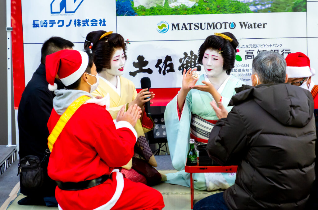 ちょうど料亭濱長のお座敷遊びや土佐芸妓の踊りなどが披露されていました。なかなか土佐の酒文化すごいですね。