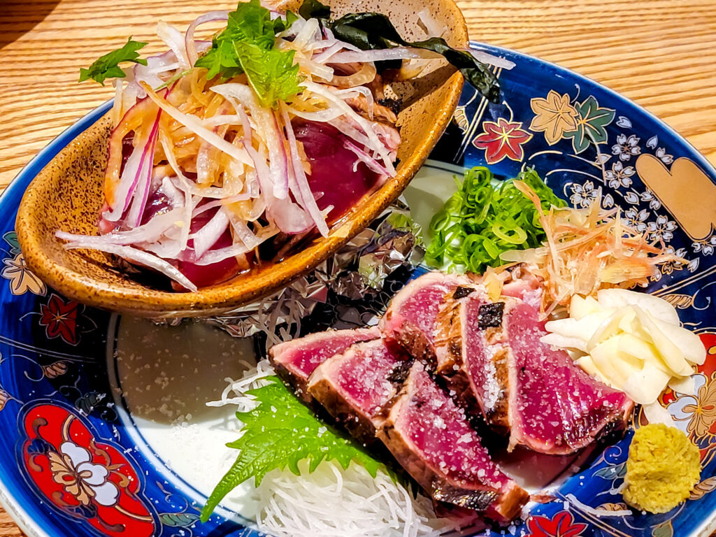 やっぱり鰹のたたき美味しいですね。塩とタレを食べ比べてみましたが、私は塩たたきが好みでした。