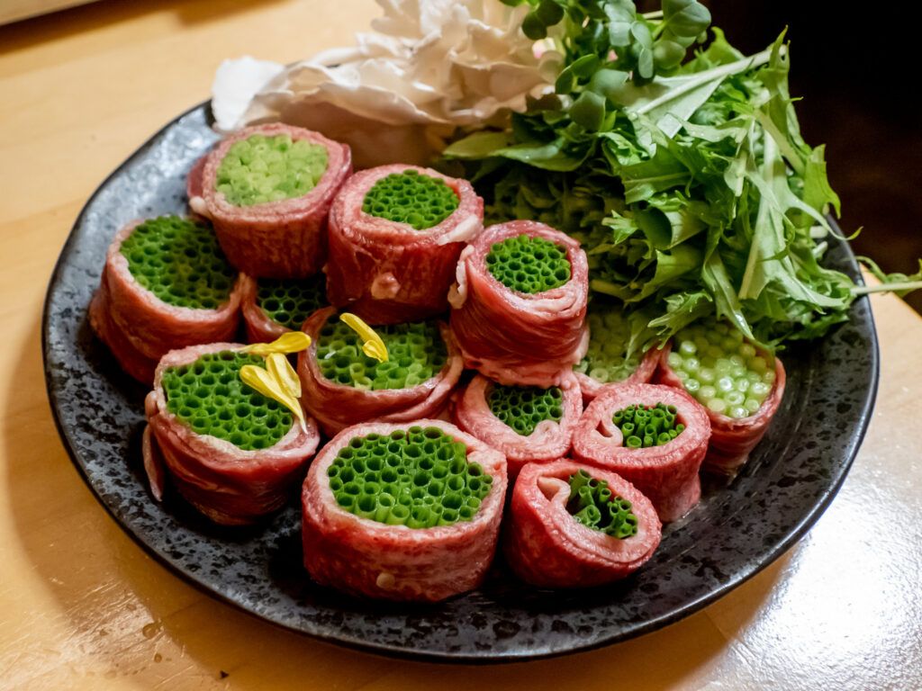 超ロング和牛タンしゃぶというのも気になりましたが、やっぱりタンとネギの相性は最強ということで、たっぷりネギ巻きタンしゃぶを。
