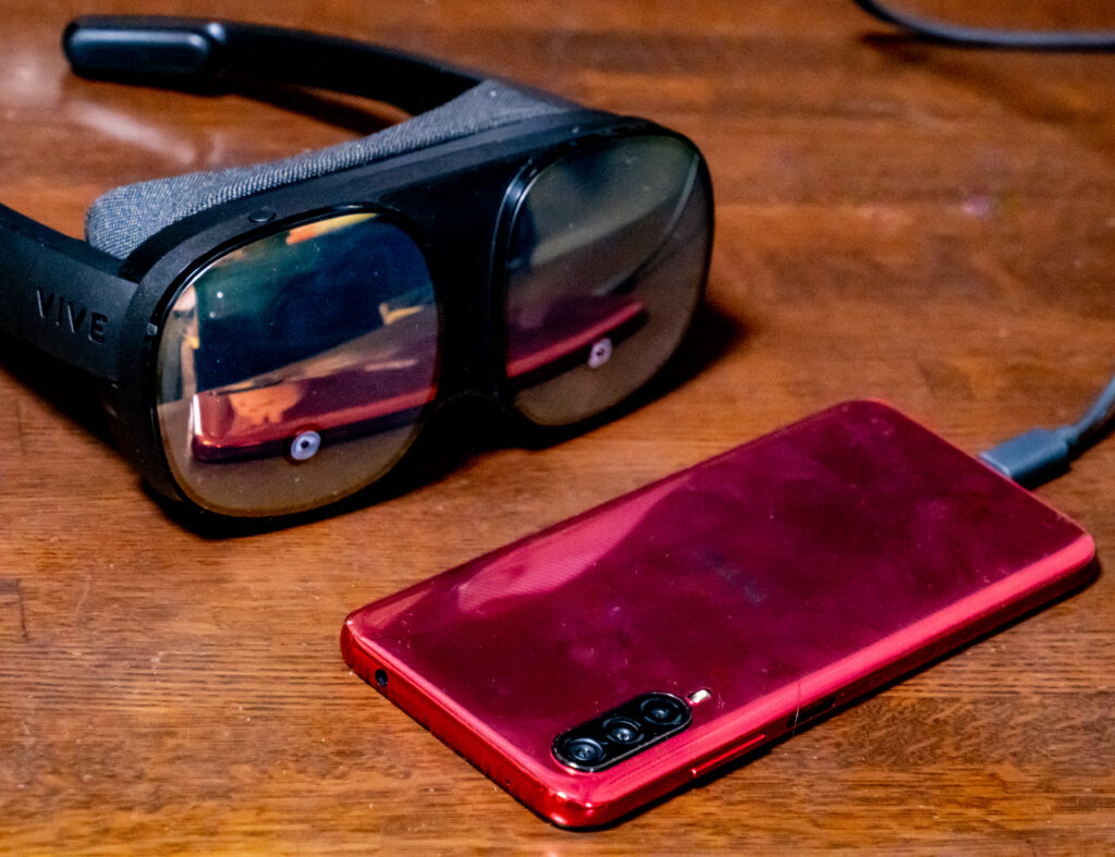 VIVE FlowをDesire 22 proかモバイルバッテリーに接続します。