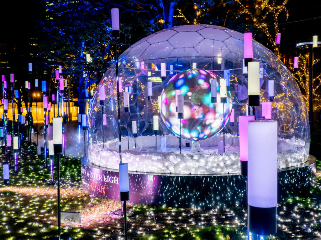 12月14日までの期間限定でスモークを閉じ込めたシャボン玉が舞う演出もありました。