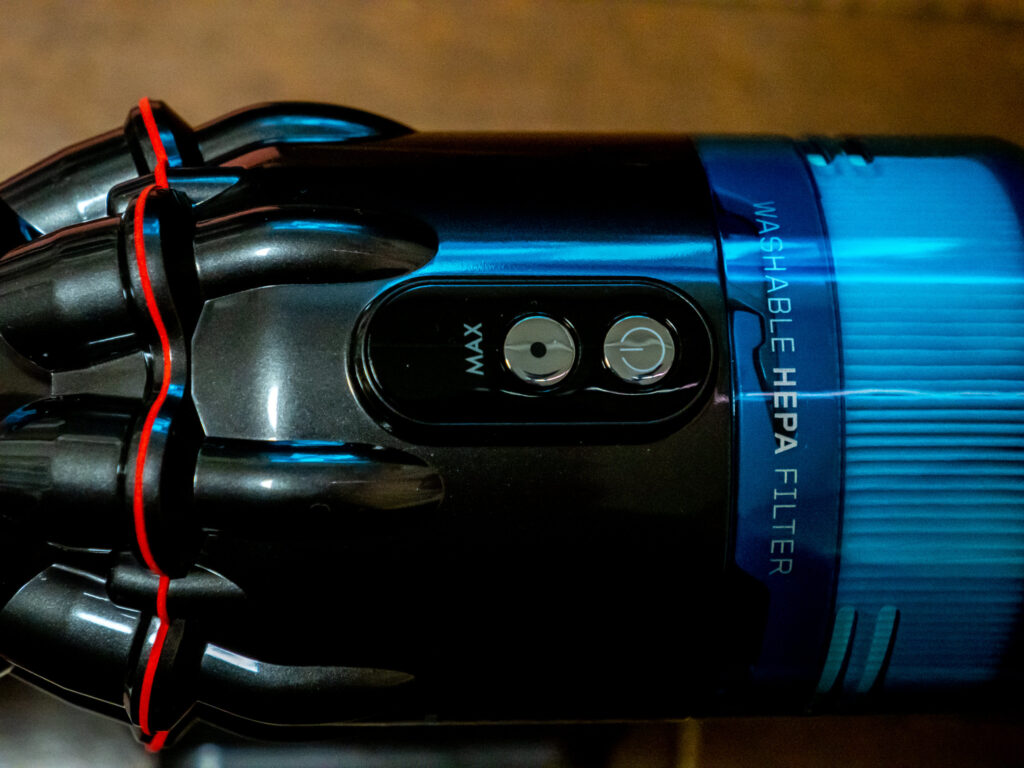 電源ボタンのみ押すとエコモードでMAXボタンを押すと強モードに。エコモードだと吸引力は落ちますが、普段使いには問題ない感じ。音も随分静かになっています(SV07との比較ですが)。