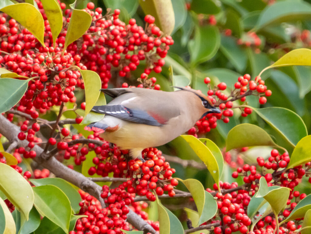 木場公園にヒレンジャクが来ているというので、散歩がてら観てきました。行ってみると、ヒレンジャク、キレンジャクが思った以上の群れでいて、時折クロガネモチの実を食べに来ていました。 大きな望遠レンズで撮影する人や双眼鏡で観察する人など、とても多くの人がいたので、場所はすぐに分かりました。 OM1 + M.ZUIKO DIGITAL ED 100-400mm F5.0-6.3 IS + MC-20 で手持ち撮影です。