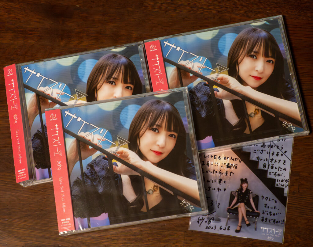 少し前ですが、紗々さんの2ndミニアルバム「サケスリー」が届きました。デビューミニアルバム「スキスリー」は、紗々さんらしいスキなものを詰め込んだ曲でしたが、今回はお酒とオトナがテーマ。お酒はともかく、オトナやセクシーはあまりイメージにないので(失礼)、どんな作品なのか気になっていました。