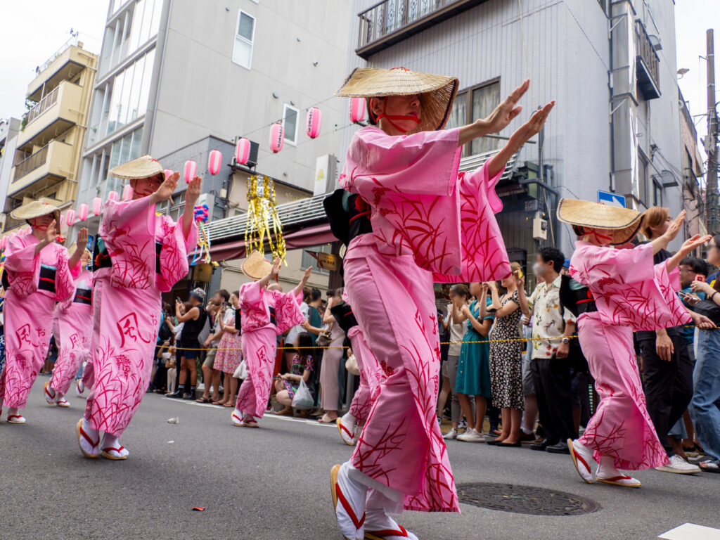 7/8の夕方は、越中おわら節のパフォーマンスがありました。越中おわら節は、富山県八尾地域で行われるおわら風の盆で披露される民謡・踊りです。