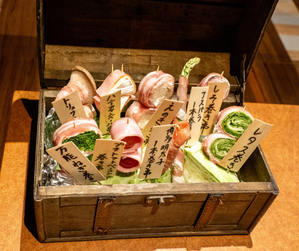 店員さんが宝箱を持ってきて、開けると野菜巻き串のサンプルでした。