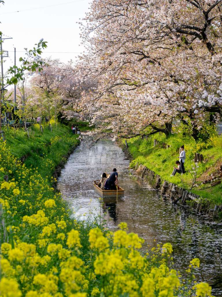 小江戸川越 新河岸川 舞い散る桜と花筏・菜の花・ 舟遊び 大正浪漫夢通りのこいのぼり #川越 #桜