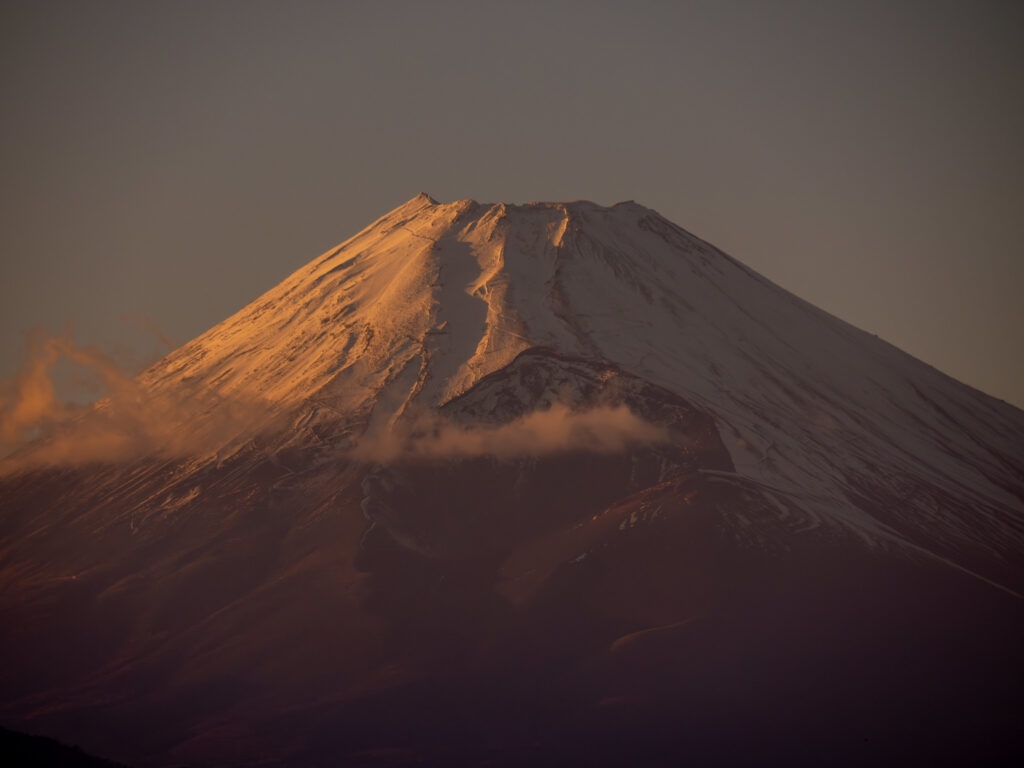 富士山に夕日があたってオレンジに輝く姿が美しかった。