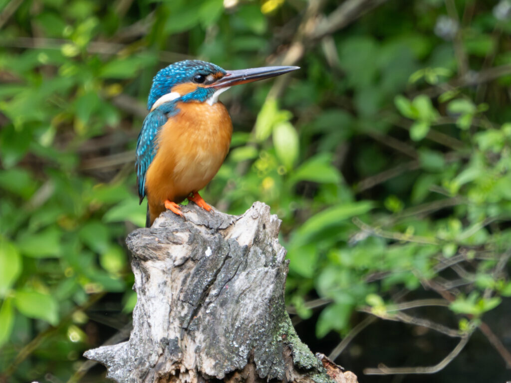 オスのカワセミは飛び去ってしまい、メスのカワセミが出てきました。
