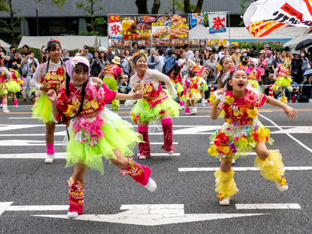 YOSAKOIやダンス・バトンなどのパフォーマンスが行われる360度ステージが6カ所設けられ、様々な連やグループのパフォーマンスが行われていました。