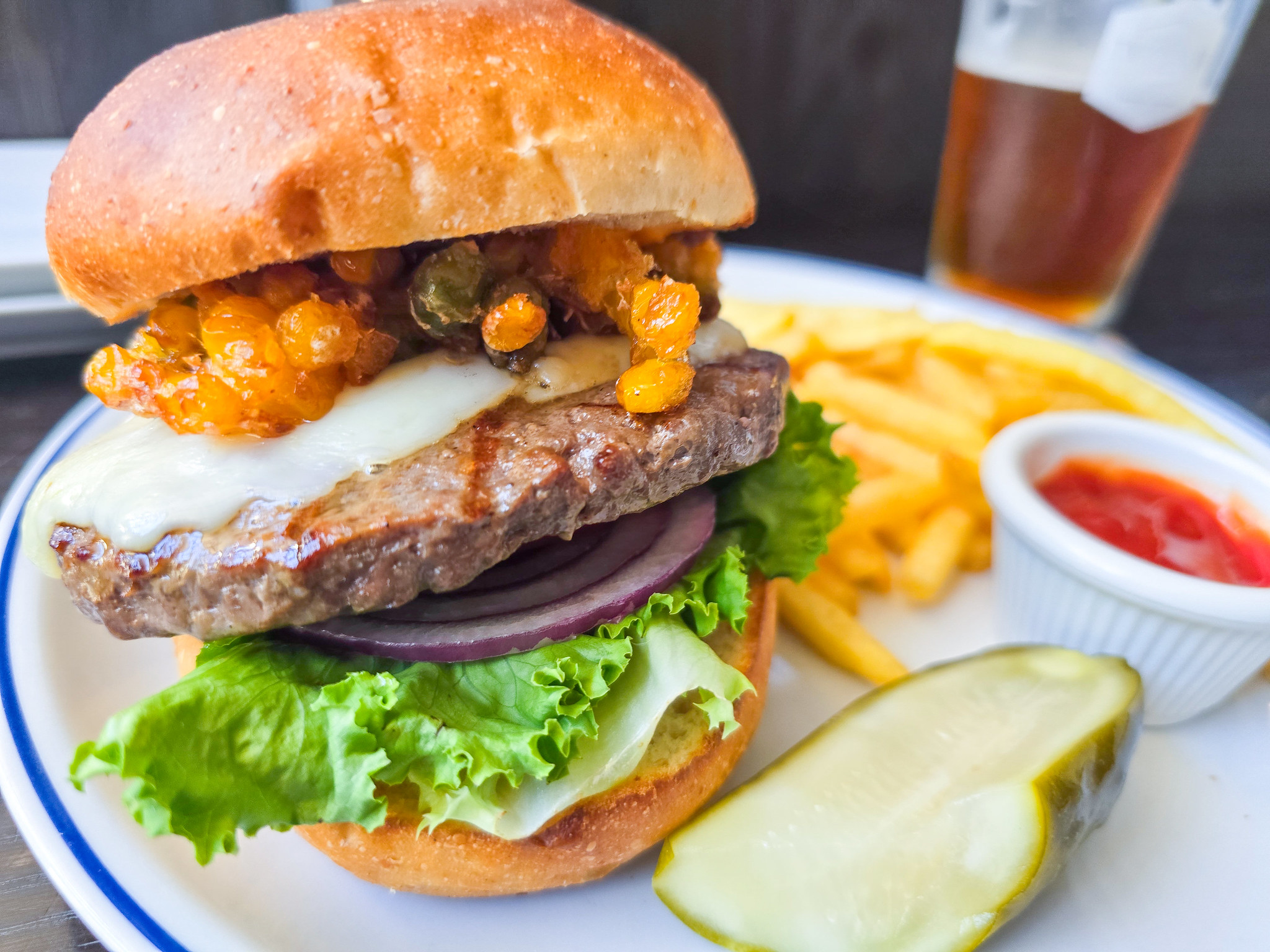 かき揚げはとうもろこしと枝豆のかき揚げでした。意外にビーフ100%パティとたまり醤油マヨネーズと合って、バランスが良いですね。野菜もたっぷりで美味しいです。ビアバンズもしっかりとしています。
