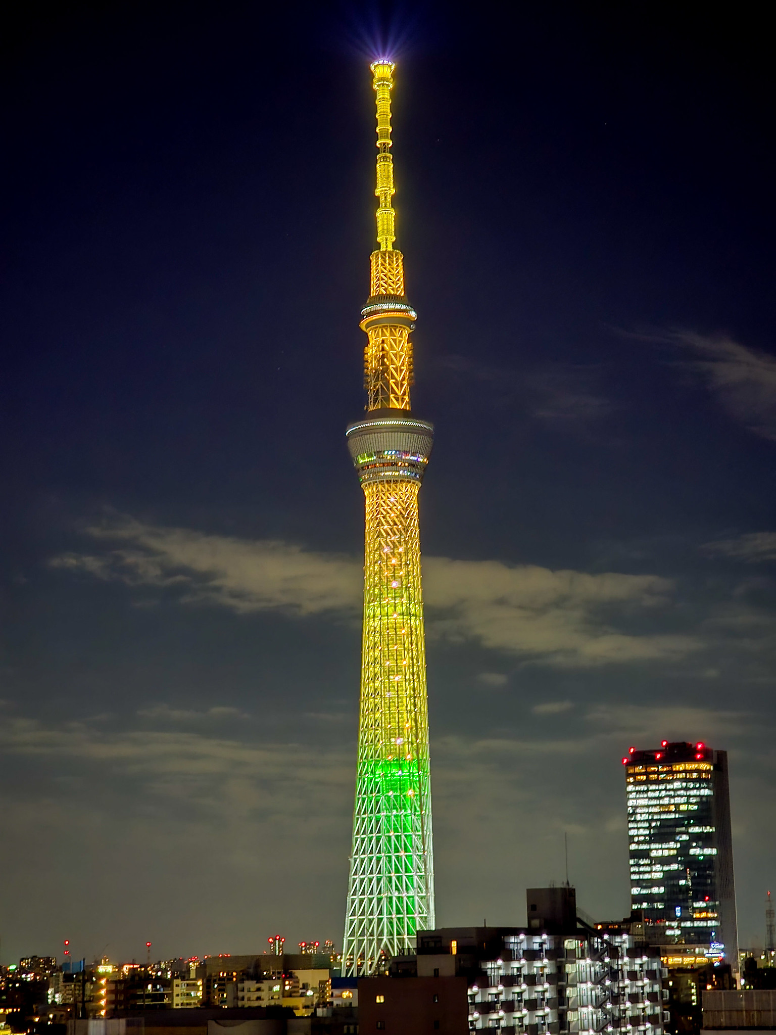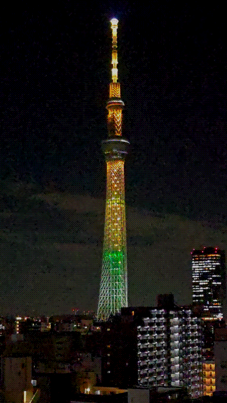 今日ふと東京スカイツリーを見ると、とっても黄色かったので、なんのライティングだろう?と思って調べたところ、夏の特別ライティング「向日葵」だそう。「花火」に加え、今年から新たに始まったライティングらしいです。