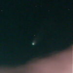 まだ完全に暗くなっていない日没40分後くらいに撮影。肉眼では全く見えないですが、東京でもレモン彗星を長い尾を含めて撮影できました。